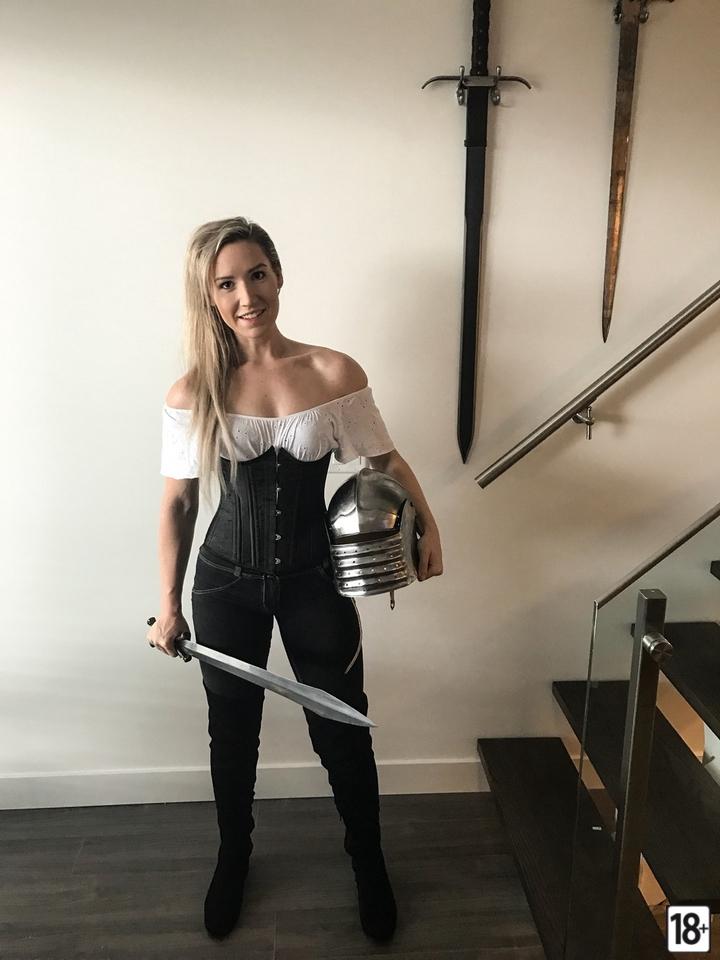 А вот на первом фото корсет даже уместен, кто-то устроил у себя в доме небольшой музей средневекового оружия и доспехов, так что барышня вписалась в интерьер органично – корсеты тогда носили!